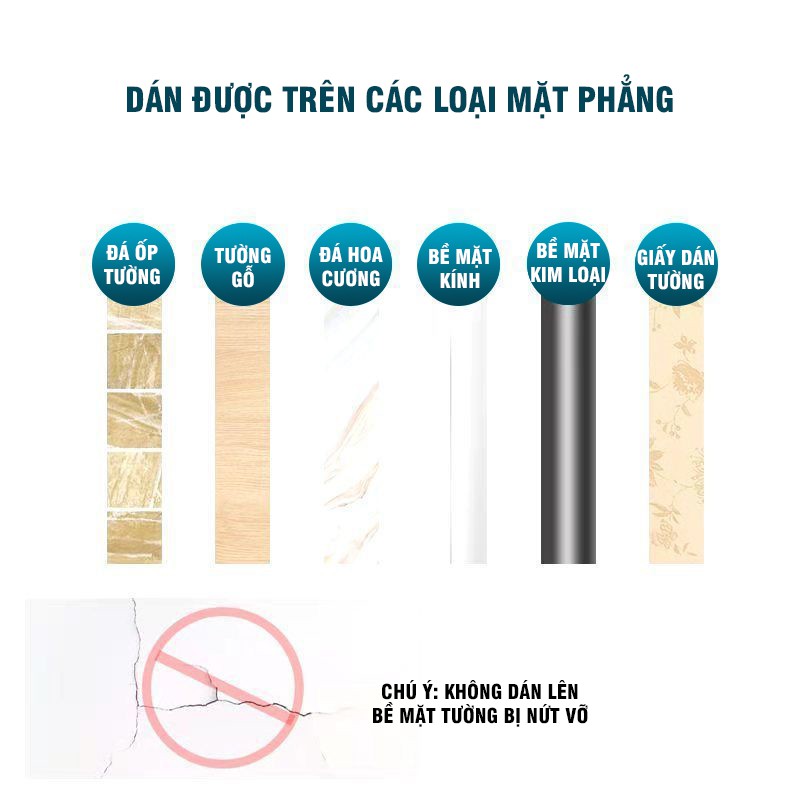 - LƯU Ý: KHÔNG DÁN LÊN BỀ MẶT TƯỜNG BỊ NỨT VỠ
