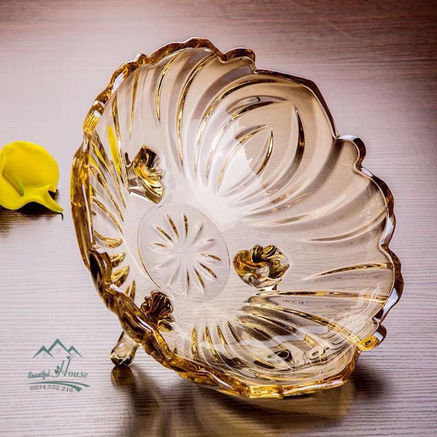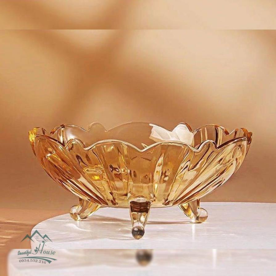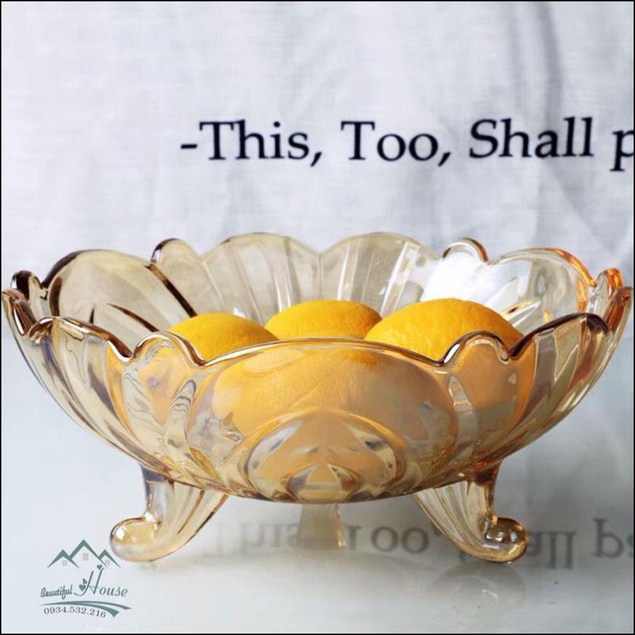 Khay Đựng Trái Cây Màu Hổ Phách - Đĩa Đựng Trái Cây 3 Chân Cao Cấp