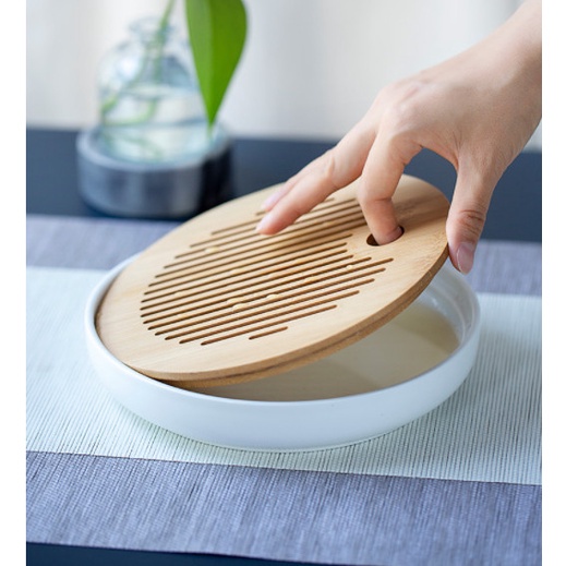 Khay Đựng Ấm Chén Uống Nước Sang Trọng,Khay Trà Đạo Có Khay Đựng Nước Tiện Lợi
