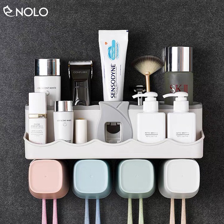 Giới thiệu Khay Đựng Bàn Chải Kem Đánh Răng Vật Dụng Dán Tường Siêu Chắc Kèm 4 Cốc Chất Liệu Nhựa PP Nhựa Lúa Mạch