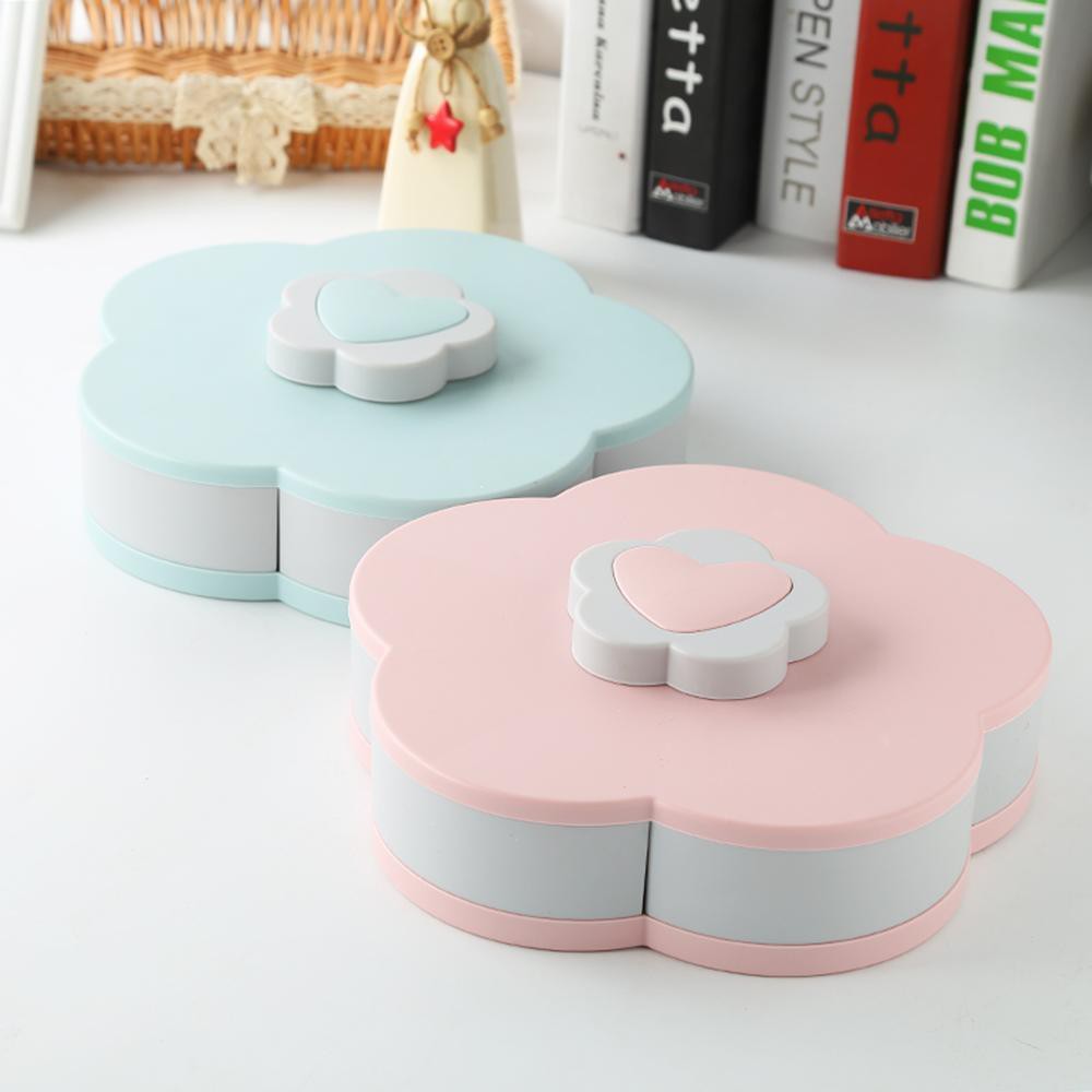 Khay đựng bánh kẹo hình Hoa 5 cánh tự xoay đóng mở KamiHome