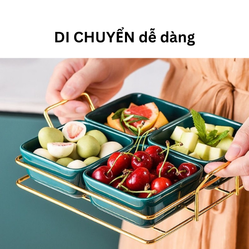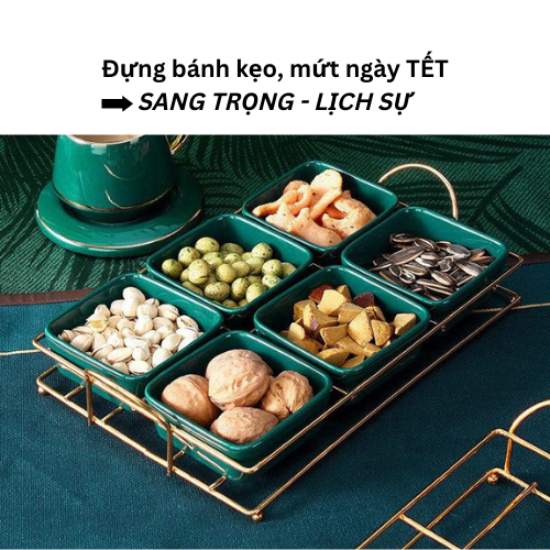 - Khay đựng bánh kẹo hoa quả mứt Tết SỨ MEN NGỌC sáng bóng sang trọng, lịch sự có 6 đĩa đựng, giúp bạn có thể đựng các loại hoa quả, bánh kẹo, mứt theo ý muốn của mình.