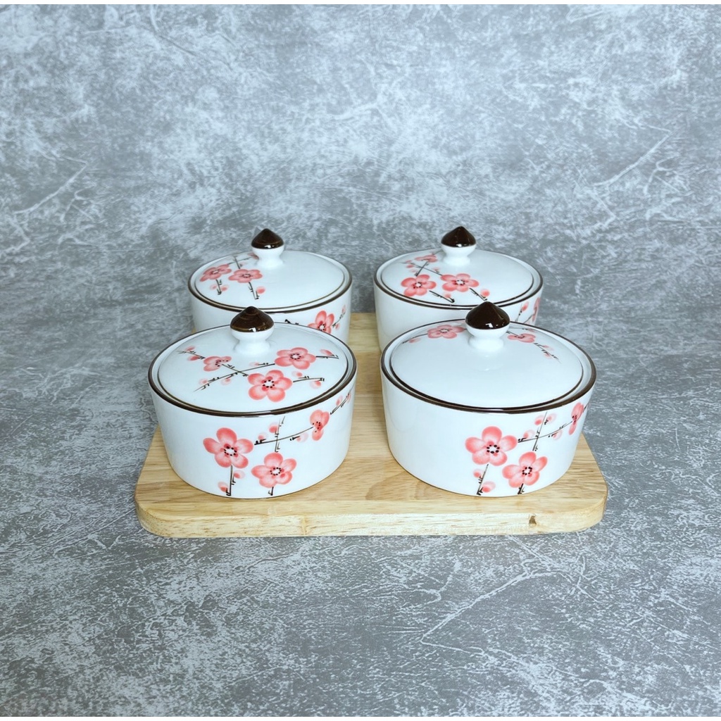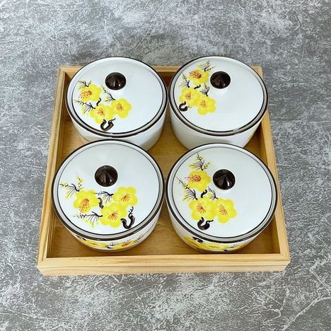 Hộp/ Khay mứt bánh kẹo được vẽ tay từ các nghệ nhân gốm sứ, 2 mẫu, hoa đào đỏ thắm và mai vàng lấp lánh
