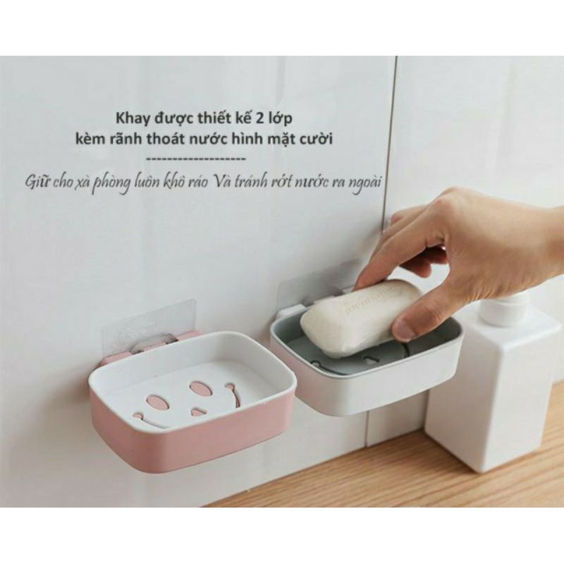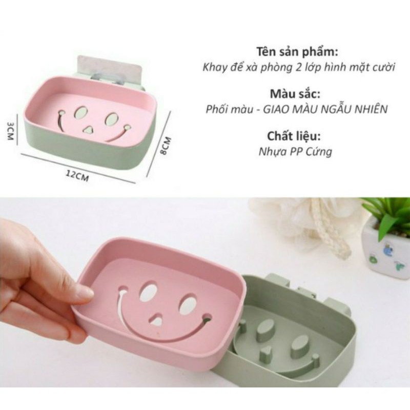 Khay Để Bánh Xà Phòng Dán Tường 2 Lớp Đáy Kín Hình Mặt Cười• Chất liệu: Nhựa PP cứng