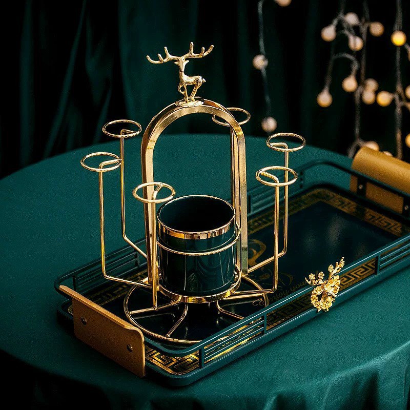- Tay cầm của khay được thiết kế tinh tế và nạm vàng vô cùng sang trọng