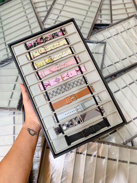 ⌚️Khay dây đồng hồ lót nhung mịn , đựng được tất cả loại dây ko riêng gì cho Apple Watch• Thun chắn dây để đảm bảo không rơi rớt