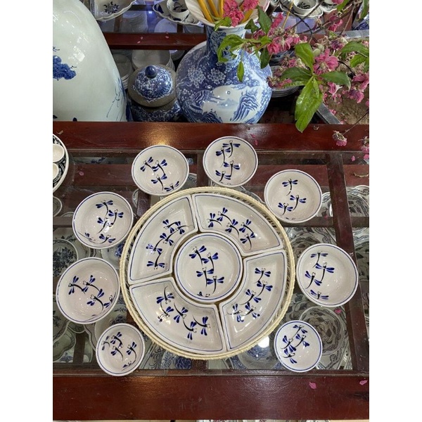 Khay đựng đồ ăn kèm khay mây đường kính 30cm.Hàng gốm sứ Bát Tràng.