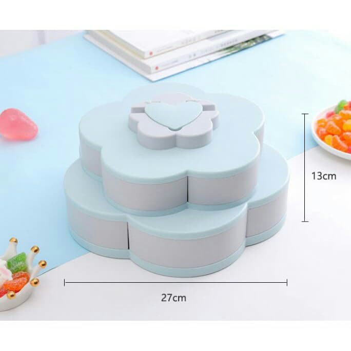 Khay đựng đồ ăn vặt-mứt Tết-lưu giữ đồ vật xoay 2 tầng có đế gác điện thoại hình hoa đào cực đẹp mắt