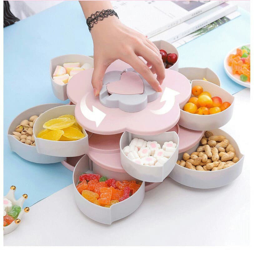Khay đựng đồ ăn vặt - mứt Tết - lưu giữ đồ vật xoay 2 tầng có đế gác điện thoại hình hoa đào cực đẹp mắtMột chiếc khay đựng mứt, ô mai, hướng dương, và hạt dẻ… để trang trí cho phòng khách và rước thành công trong năm mới bạn nhé.