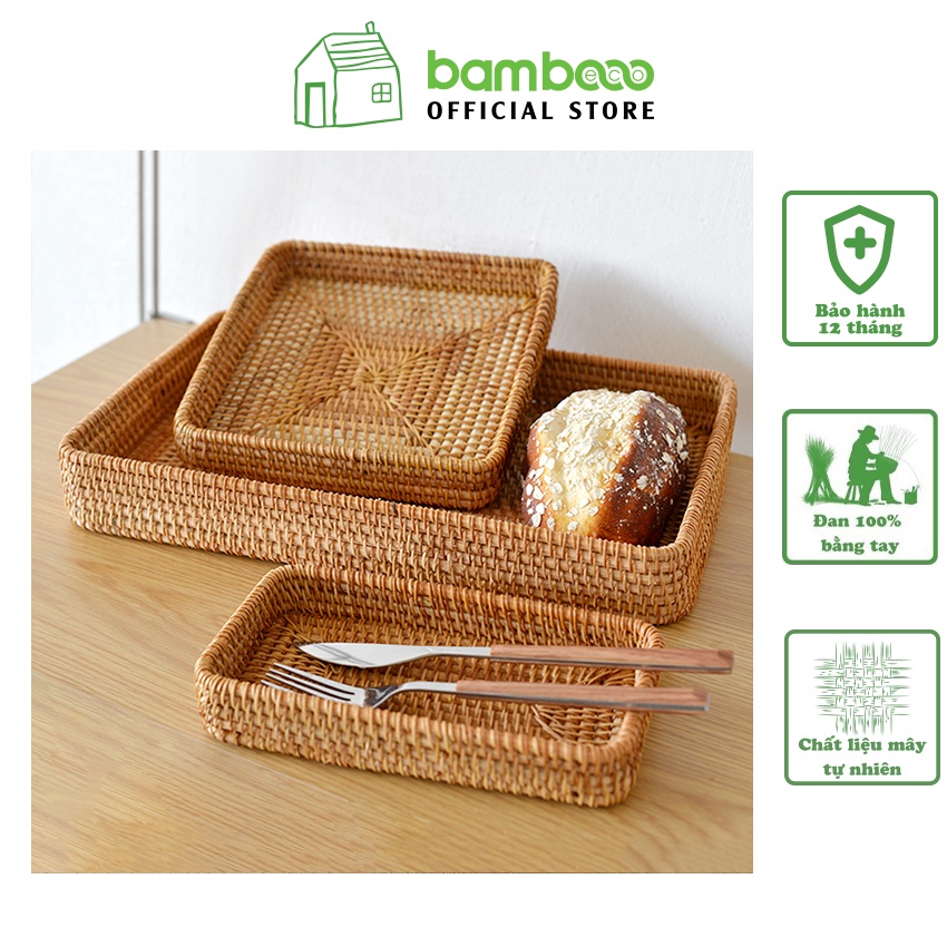 Nhà cửa & Đời sống > Bộ đồ bàn ăn > Khay, tấm lót bàn ăn || [Mã LIFEMALL2503 giảm 15% đơn 99K] Khay đựng đồ đa năng BAMBOOO ECO rổ mây tre cao cấp trang trí decorCòn hàng