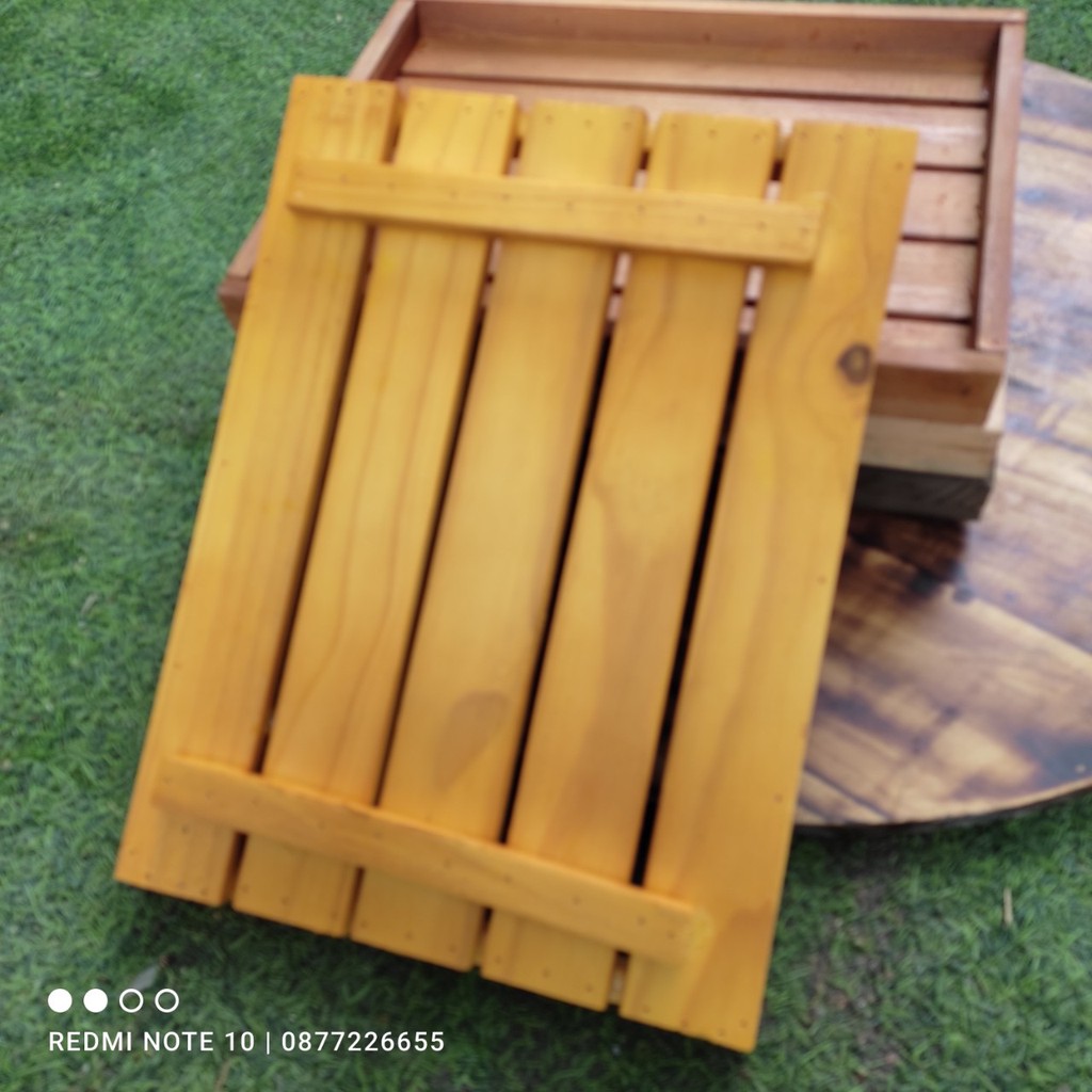 - Kích thước: 24 x 34 x 4,5cm ( khách muốn đặt size khác, vui lòng inbox shop)- Chất liệu: gỗ pallet tháo kiện hàng