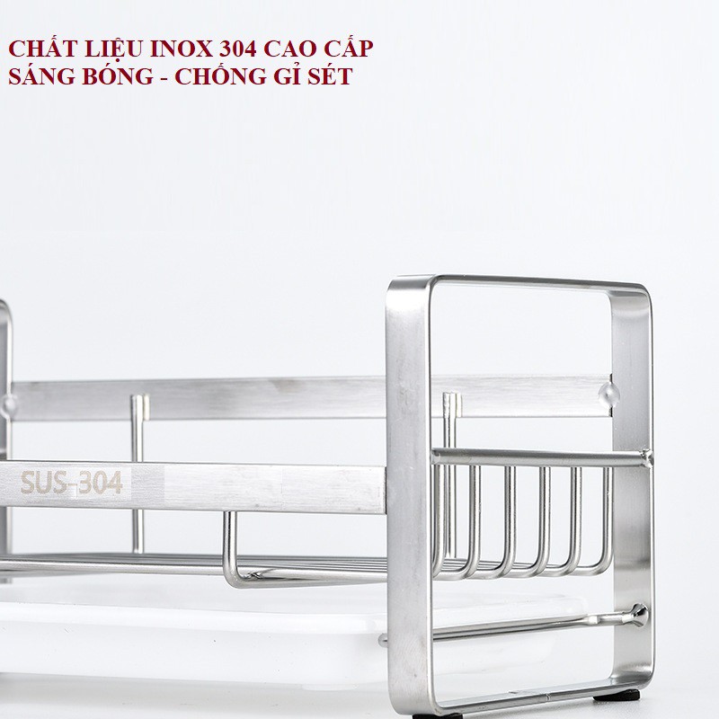 - Kệ để dụng cụ rửa chén bát inox 304 cao cấp được làm từ Inox 304 nguyên chất đặc biệt sáng bóng theo thời gian, tạo vẻ sang trọng và nâng tầm đẳng cấp cho phòng bếp nhà bạn. Không chỉ vậy, Inox 304 còn có khả năng chịu lực rất tốt, đảm bảo không xảy ra gãy móc hay méo kệ, gây sự bất tiện cho khách hàng.