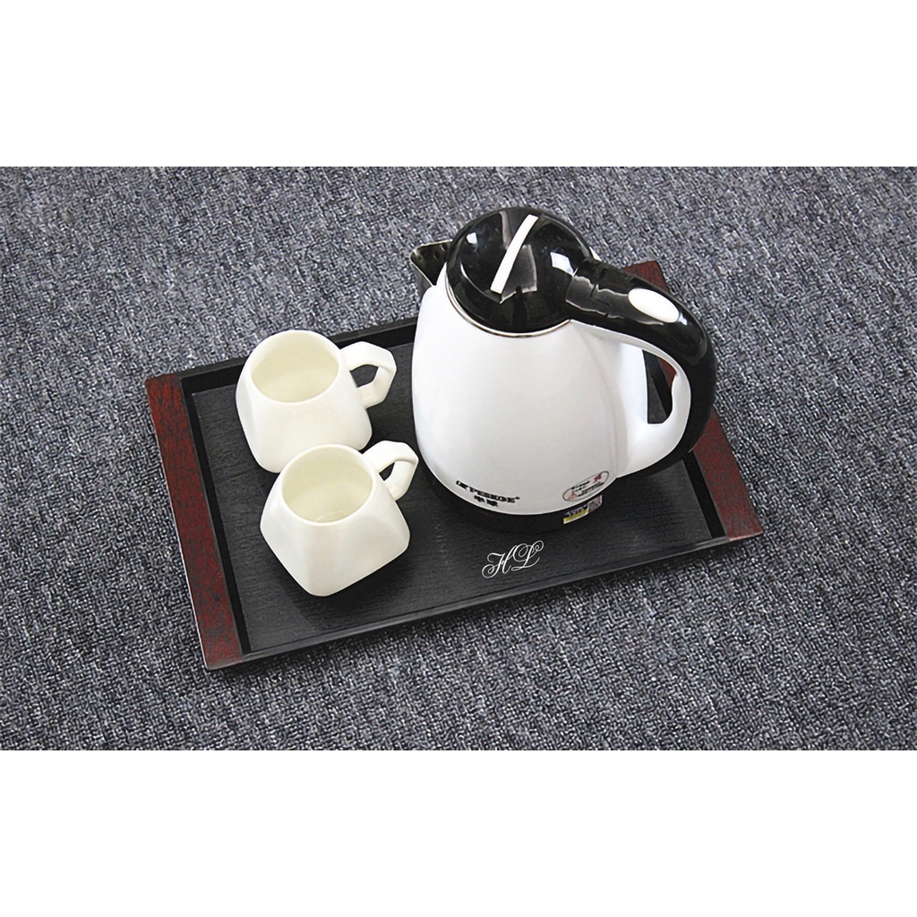 khay đựng kê nhựa gỗ hình chữ nhật đen viền đỏ chống trơn trượt đựng đồ trà, bánh, gia vị nhựa PP cực kỳ bền