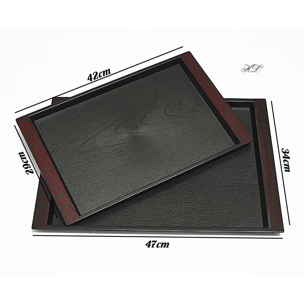 Nhà cửa & Đời sống > Bộ đồ bàn ăn > Khay, tấm lót bàn ăn || khay đựng kê nhựa gỗ hình chữ nhật đen viền đỏ chống trơn trượt đựng đồ trà, bánh, gia vị nhựa PP cực kỳ bềnCòn hàng