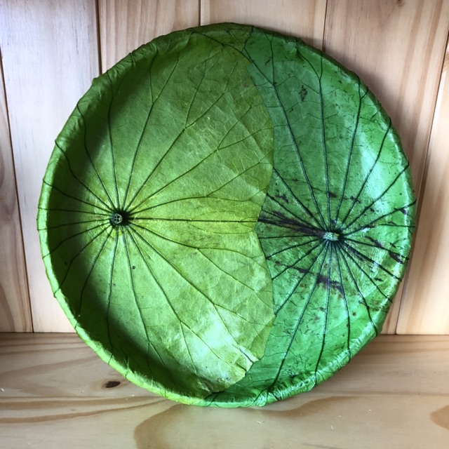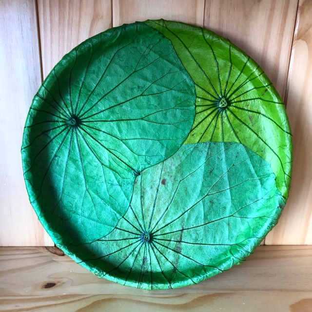 Khay đựng làm bằng lá sen, nhuộm màu bằng công nghệ hữu cơ an toàn cho sức khoẻ, đường kính 25cm