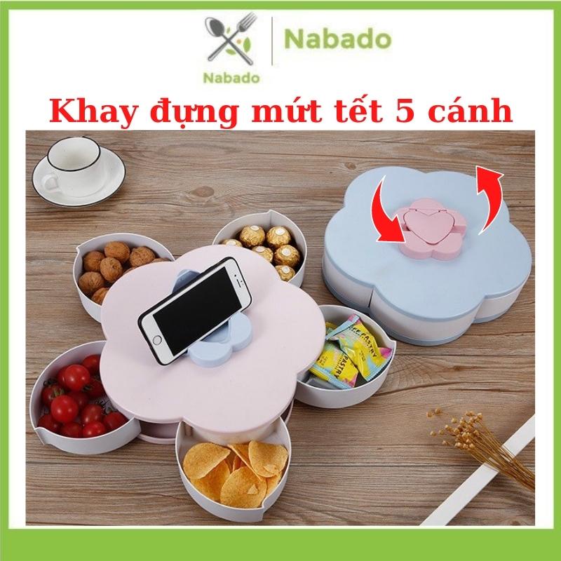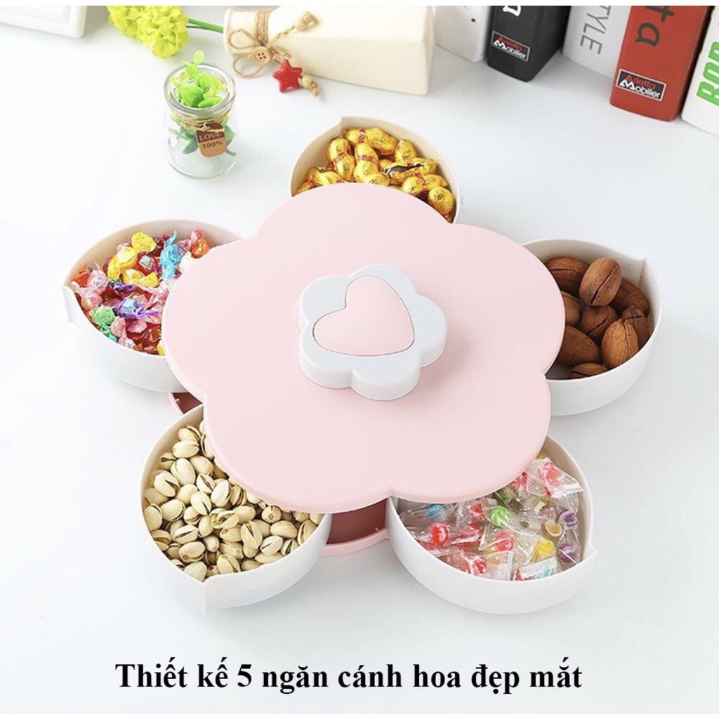 Khay đựng mứt tết 1 tầng 5 cánh hình bông hoa xoay 360 độ