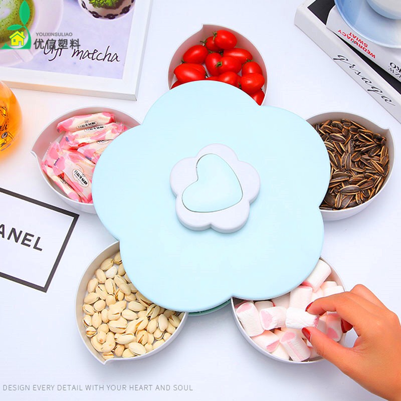 Nhà cửa & Đời sống > Trang trí nhà cửa > Bình trang trí || Khay đựng mứt tết 1 tầng 5 cánh hình bông hoa xoay 360 độCòn hàng