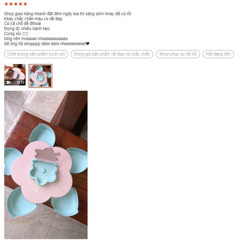 Giới thiệu Khay đựng mứt tết 1 tầng 5 cánh hình bông hoa xoay 360 độ
