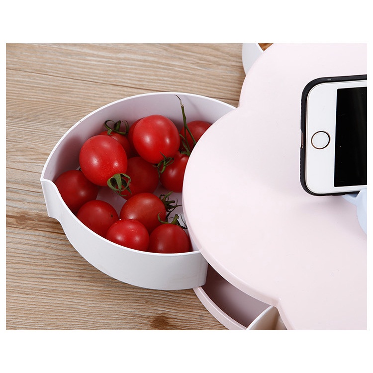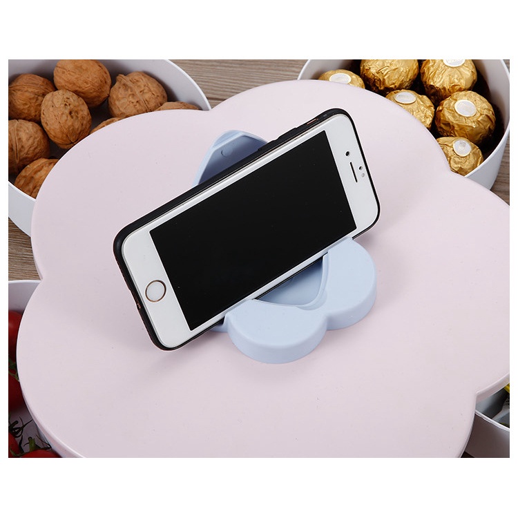 Khay Đựng Mứt Tết 1 Tầng Xoay 360 Độ Có Kèm Giá Đỡ Điện Thoại/Hộp Đựng Mứt Decor Tết 2021- lae_store21- 2 màu: Hồng - Xanh