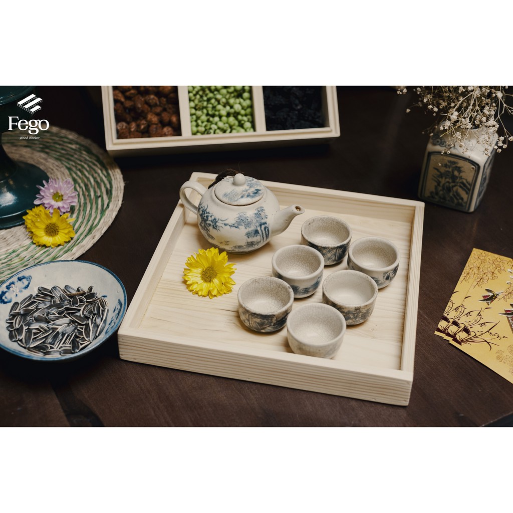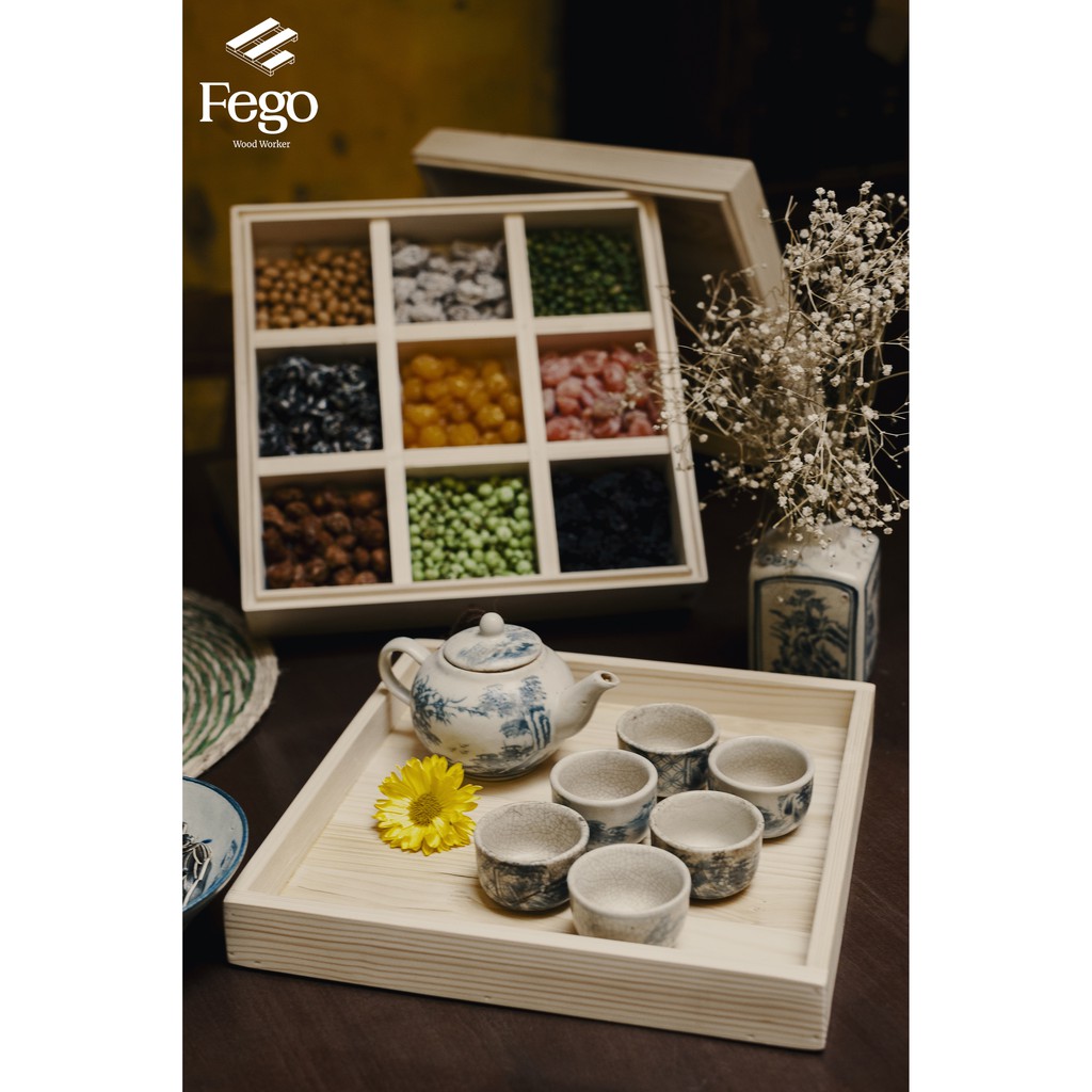 Khay đựng mứt tết, bánh kẹo / Khay gỗ thông tự nhiên FEGO0012 đa năng