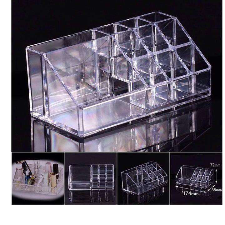 Khay đựng mỹ phẩm 16 ngăn tiện ích được làm bằng mica đúc nguyên khối cao cấp, trong suốt với thiết kế nhiều ngăn chứa sẽ giúp bạn bảo quản các các loại dụng cụ làm đẹp, mỹ phẩm hoặc các món đồ trang sức luôn được gọn gàng.