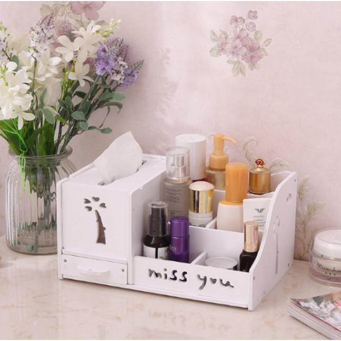 Khay đựng mỹ phẩm kèm hộp rút khăn giấy miss you