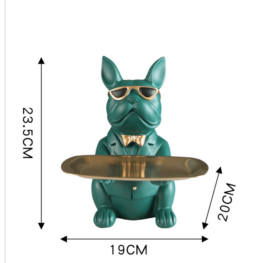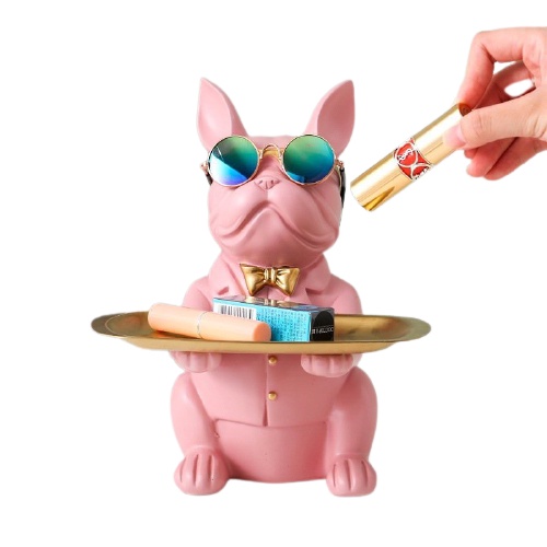 Bulldog bức tượng hình con chó bưng khay đựng đồ trang trí trong nhà.