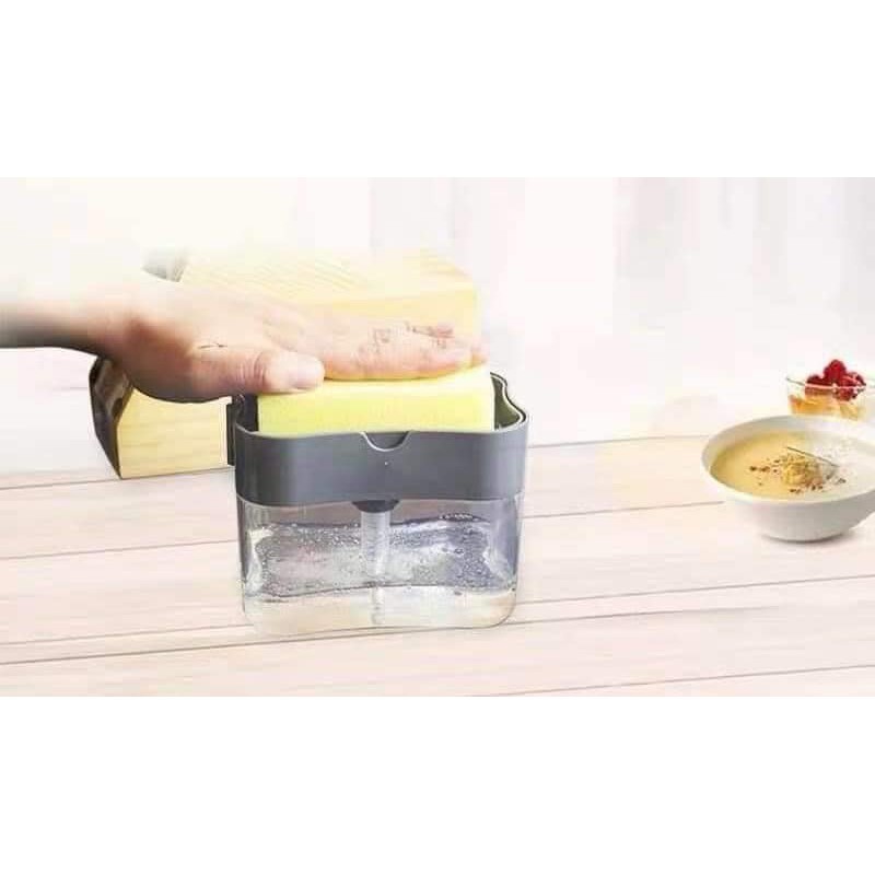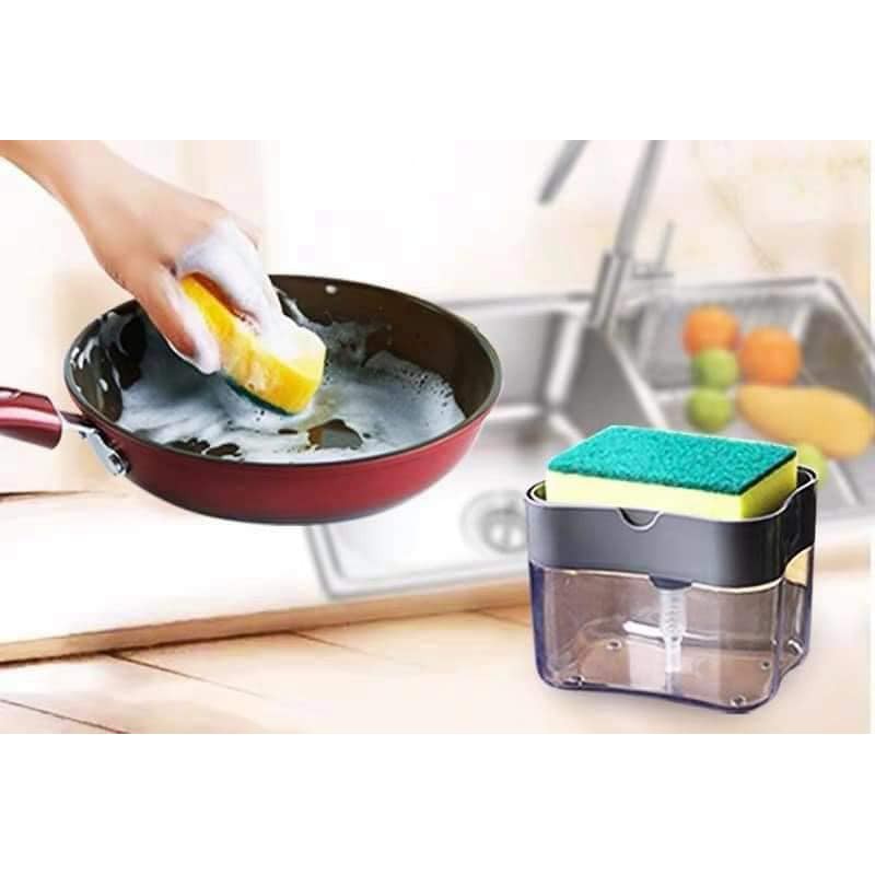 KHAY ĐỰNG NƯỚC RỬA CHÉN KÈM MÚT TỰ ĐỘNG- Bộ Sản phẩm gồm 1 hộp đựng nước rửa chén có kèm vòi hút, và tặng kèm 1 miếng xốp rửa chén