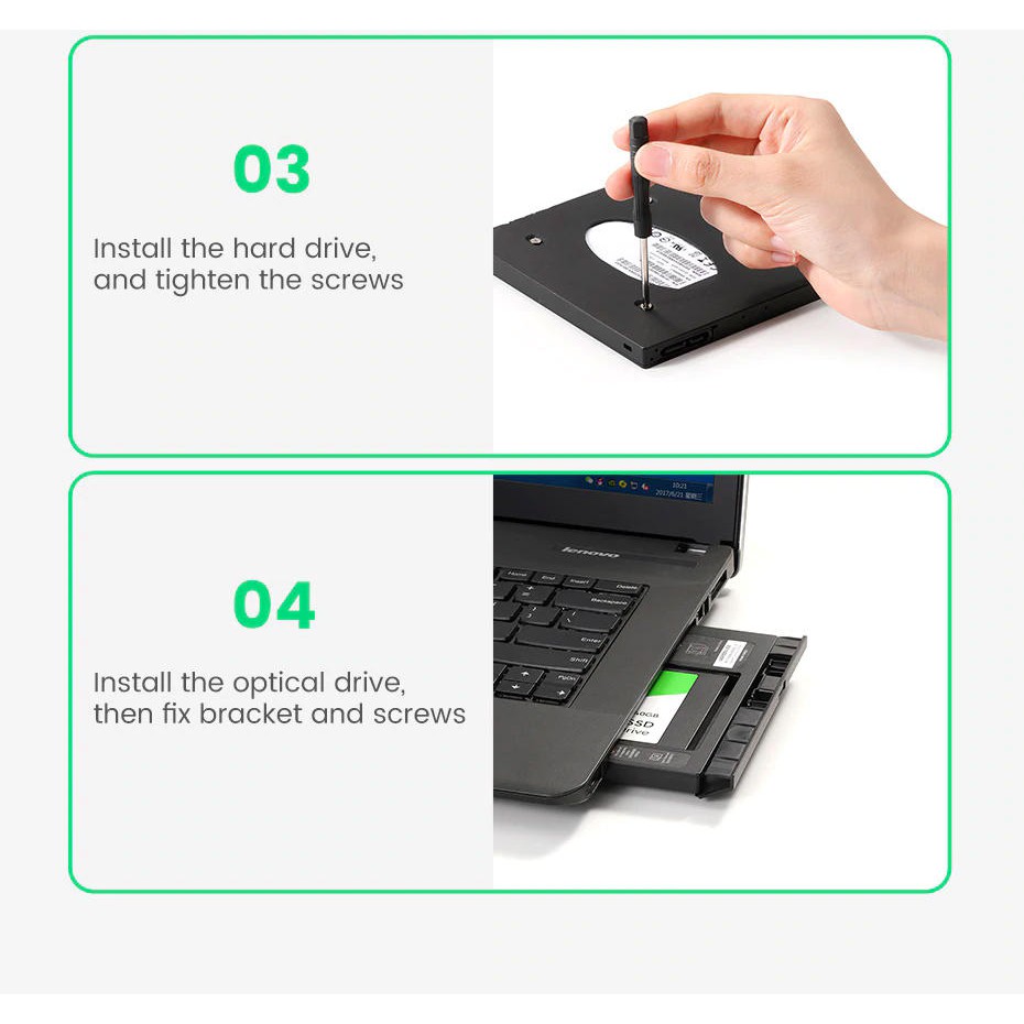 Khay đựng ổ cứng 2.5" cho Laptop có ổ CD mỏng 9.5mm UGREEN 70657 cao cấp - Hàng phân phối chính hãng - Bảo hành 18 thángTHỜI GIAN GIAO HÀNG SIÊU TỐC ĐỘ: