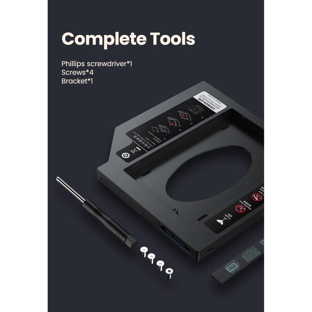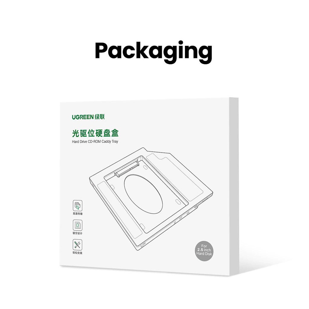 Máy tính & Laptop > Thiết Bị Lưu Trữ > Thiết Bị Đựng Ổ Cứng || Khay đựng ổ cứng 2.5" cho Laptop có ổ CD mỏng 9.5mm UGREEN 70657 cao cấp - Hàng phân phối chính hãng - Bảo hành 18 thángCòn hàng
