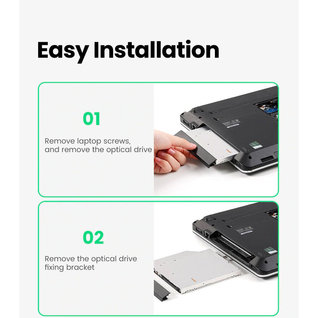 Giới thiệu Khay đựng ổ cứng 2.5" cho Laptop có ổ CD mỏng 9.5mm UGREEN 70657 cao cấp - Hàng phân phối chính hãng - Bảo hành 18 tháng