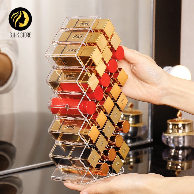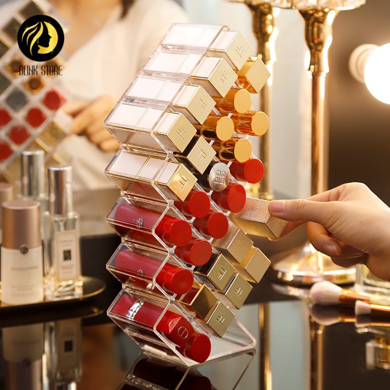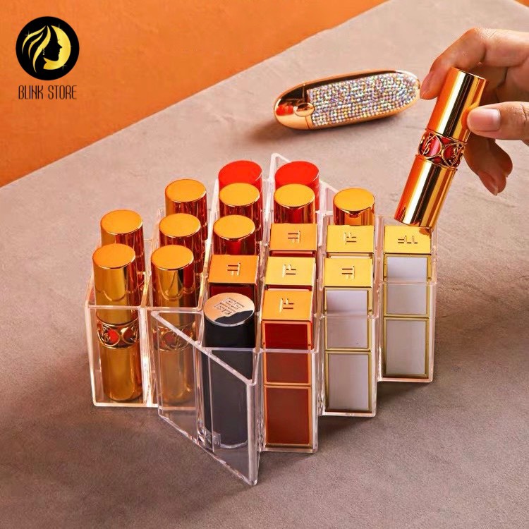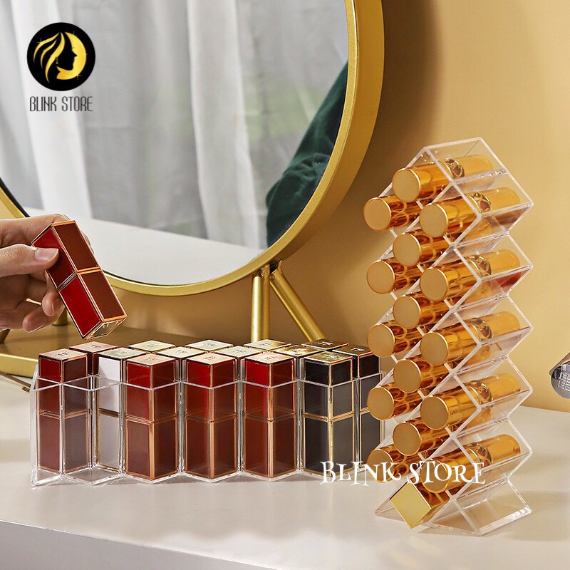 Khay đựng son 10-16 ô, kệ son trong suốt để bàn trang điểm, tiết kiệm diện tích và dễ dàng chọn màu, để được dòng son TF