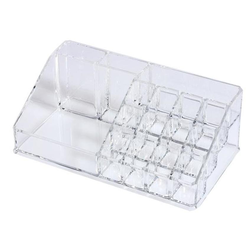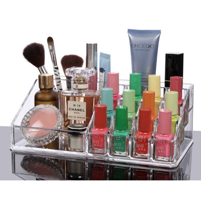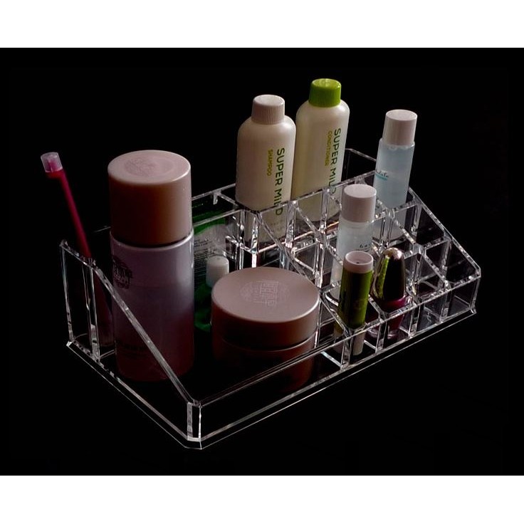 -Khay đựng son, khay đựng mỹ phẩm được thiết kế với 15 ngăn kích thước to nhỏ khác nhau giúp bạn đựng được đa dạng các loại đồ mỹ phẩm, son môi trang điểm khác nhau.