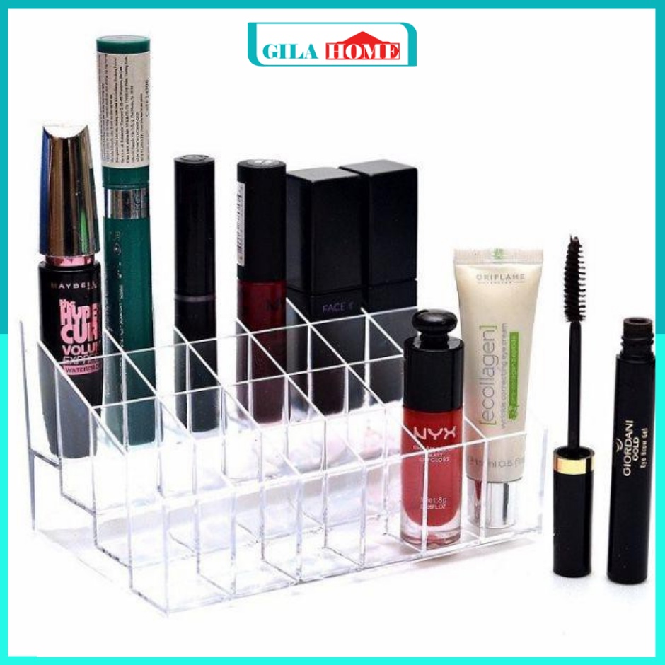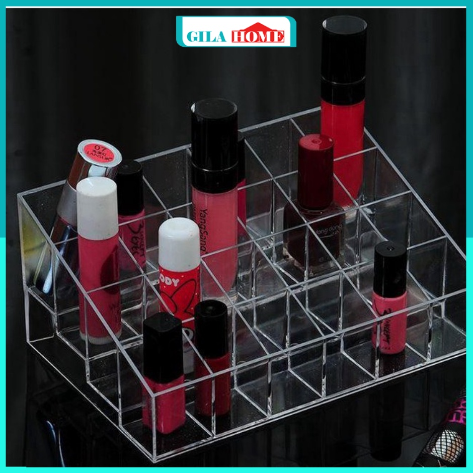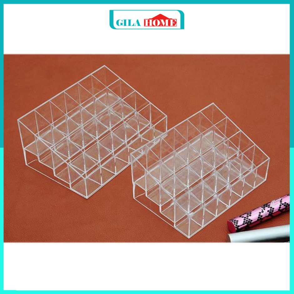 Nhà cửa & Đời sống > Trang trí nhà cửa > Khác || Khay đựng son trong suốt 24 ô GILA HOME chất liệu mica siêu bền kích thước 14*10*7cmCòn hàng