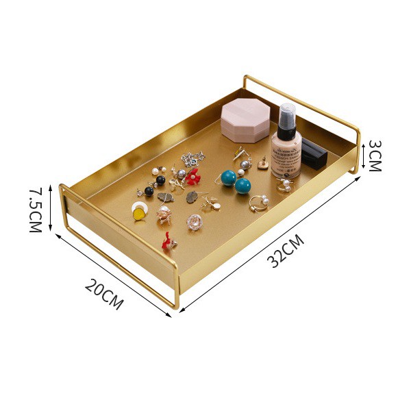 Khay đựng thức ăn cốc mỹ phẩm trang sức nến thơm kim loại mạ vàngChất liệu: Sắt mạ vàng