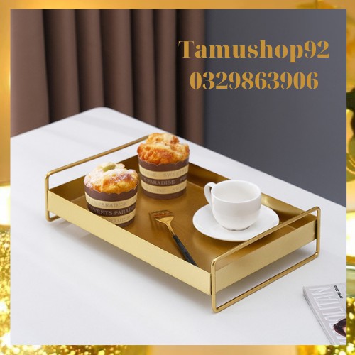 Khay đựng thức ăn cốc mỹ phẩm trang sức nến thơm decor chụp hình bằng kim loại mạ vàng