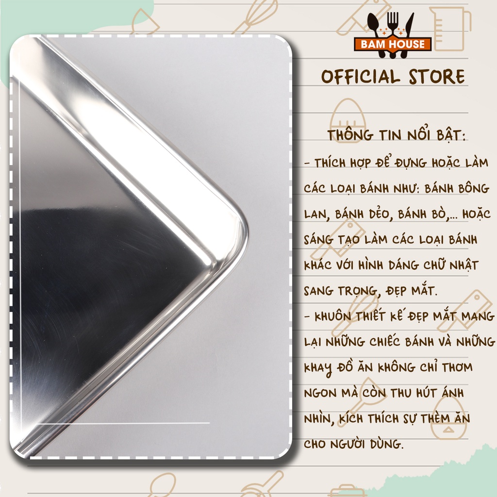 Tên sản phẩm: Khay đựng thức ăn và làm bánh inox 304 Bam House sáng bóng cao cấp KB01