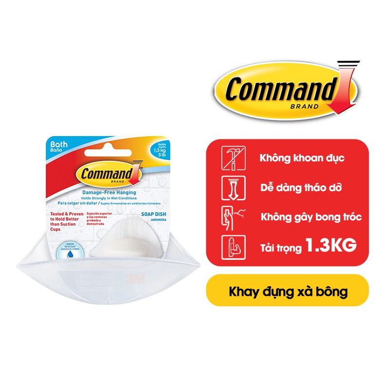 Nhà cửa & Đời sống > Đồ dùng phòng tắm > Kệ đựng xà phòng || Khay đựng xà bông Command 3M chịu lực 900g - Dễ sử dụng, độ bền cao, bám cực chắc, tháo cực dễ, chống thấm nước BATH14ESCòn hàng
