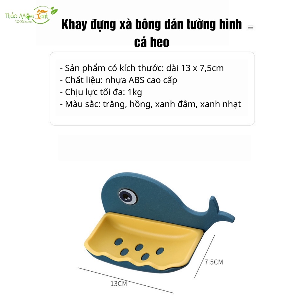 Khay đựng xà bông dán tường hình cá heo- Sản phẩm Khay đựng xà phòng tiện dụng, sạch sẽ/ được làm từ chất liệu nhựa PP bền chắc, màu sắc tươi sáng, giúp cho xà bông cục luôn khô ráo và sạch sẽ, kích thước nhỏ gọn phù hợp với bánh xà phòng đồng thời giúp tiết kiệm không gian