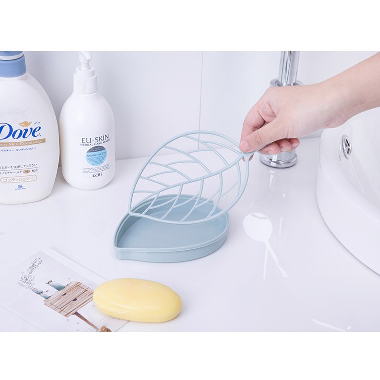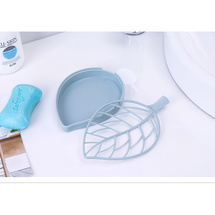 Khay đựng xà bông hình chiếu lá nhỏ gọn dễ thương 2 lớp dễ vệ sinh