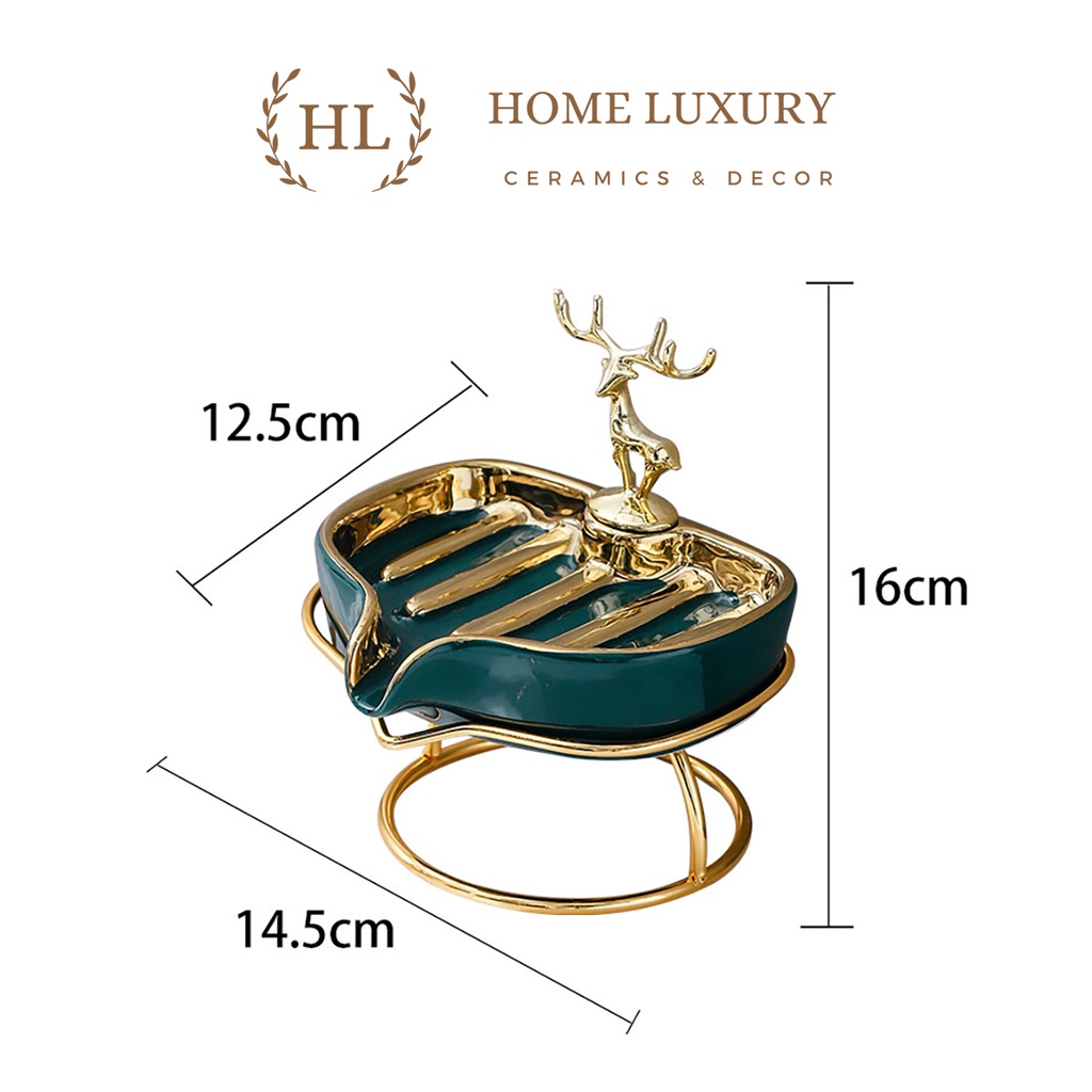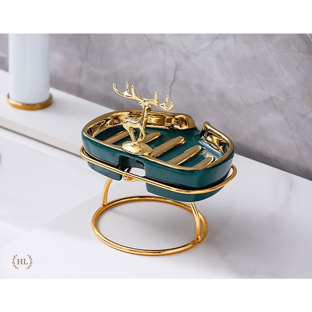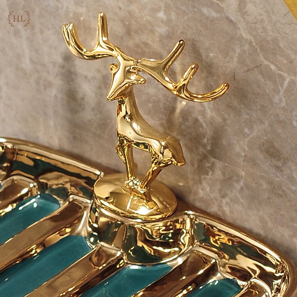 Khay đựng xà bông hình hươu mạ vàng chất liệu sứ kèm kệ Inox vàng gương | KỆ XÀ PHÒNG RỬA TAY SỨ DECOR HÌNH HƯƠU CAO CẤP