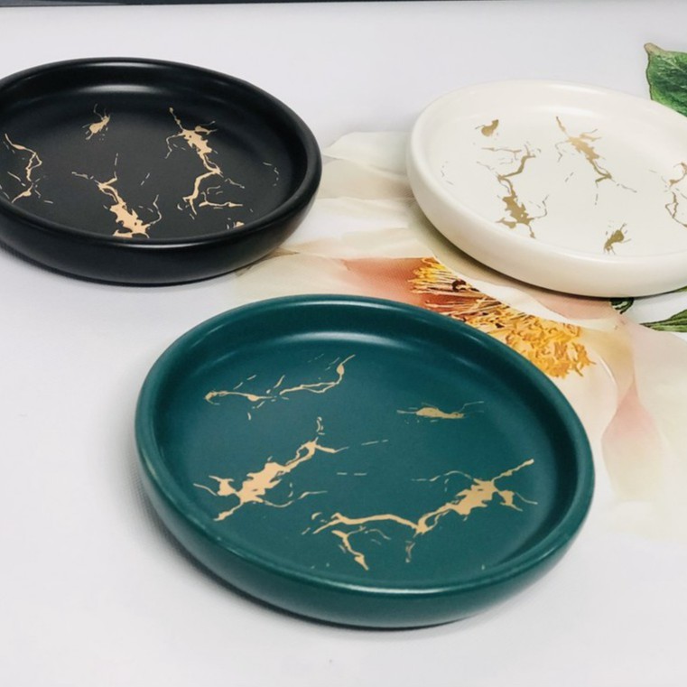 Khay đựng xà bông xà phòng nhà tắm hình tròn bằng sứ vân đá