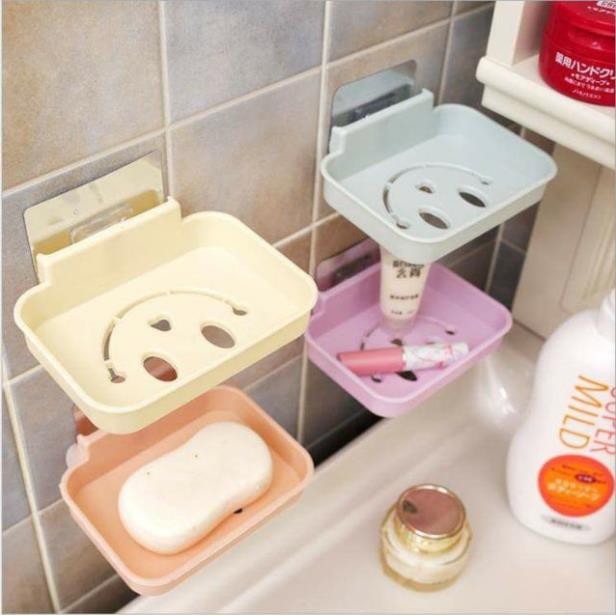Khay đựng xà phòng có thể treo lên tường hình mặt cườiKhay gồm thêm miếng dính để treo lên tường rất chắc chắn, có lỗ thoát nước xuống khô ráo.