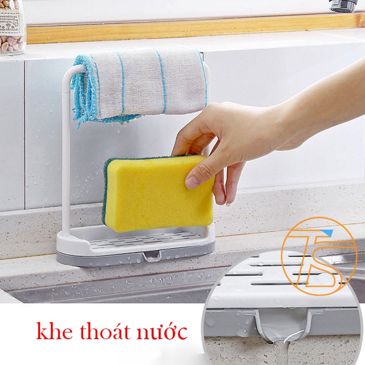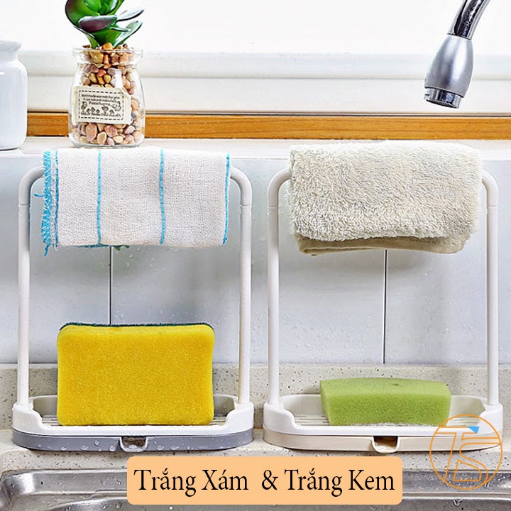 Khay Đựng Xà Phòng Kèm Giá Treo Khăn Có Khay Thoát Nước - Khay Để Bọt Biển Rửa Chén GD00181