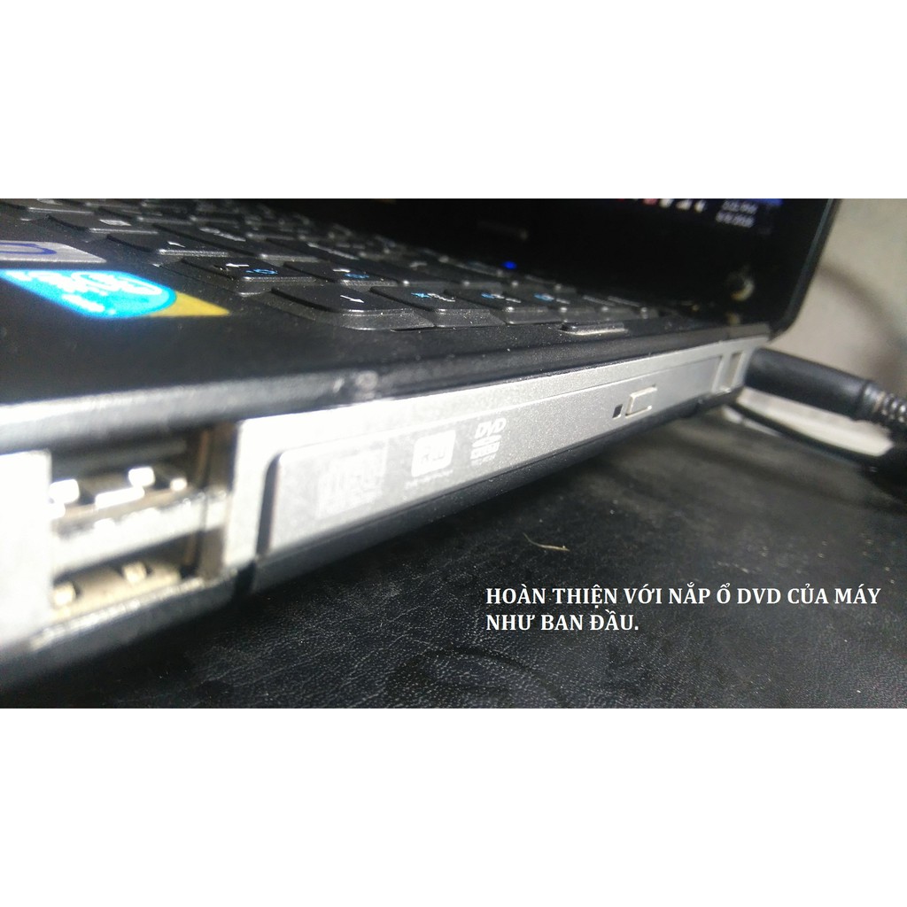 Lưu ý: Sản phẩm không bao gồm miếng nắp nhựa, và nhà sản xuất khuyến nghị người dùng nên tháo nắp nhựa từ ổ DVD rồi gắn lại cho caddy bay giúp lắp vào khớp với máy và có vẻ ngoài hoàn thiện như ban đầu.