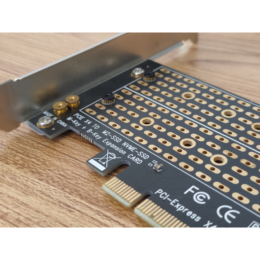 Card gắn ổ cứng M2 chuyển ra 2 khe cắm M2 NVMe “M Key” và M2 SATA “B&M Key”. Sử dụng cho hầu hết các loại ổ cứng M2 trên thị trường hiện nay.