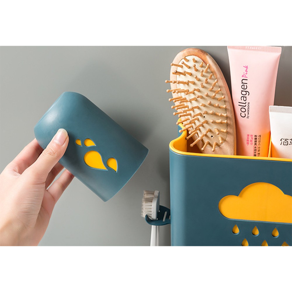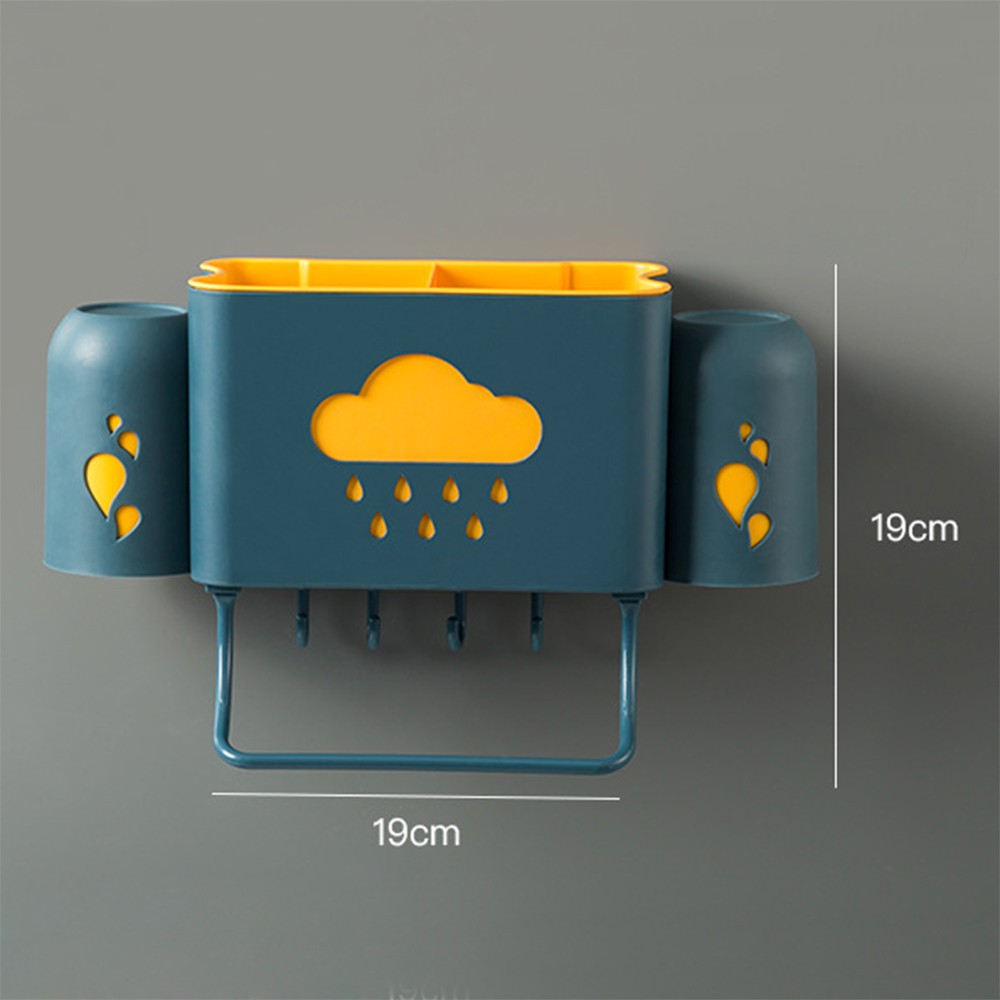 Khay Giá Để Bàn Chải, Cốc, Tuýp Kem Đánh Răng MÂY & CƠN MƯA (Có 4 Móc Treo + Kèm 2 Cốc + Khung Treo Khăn)