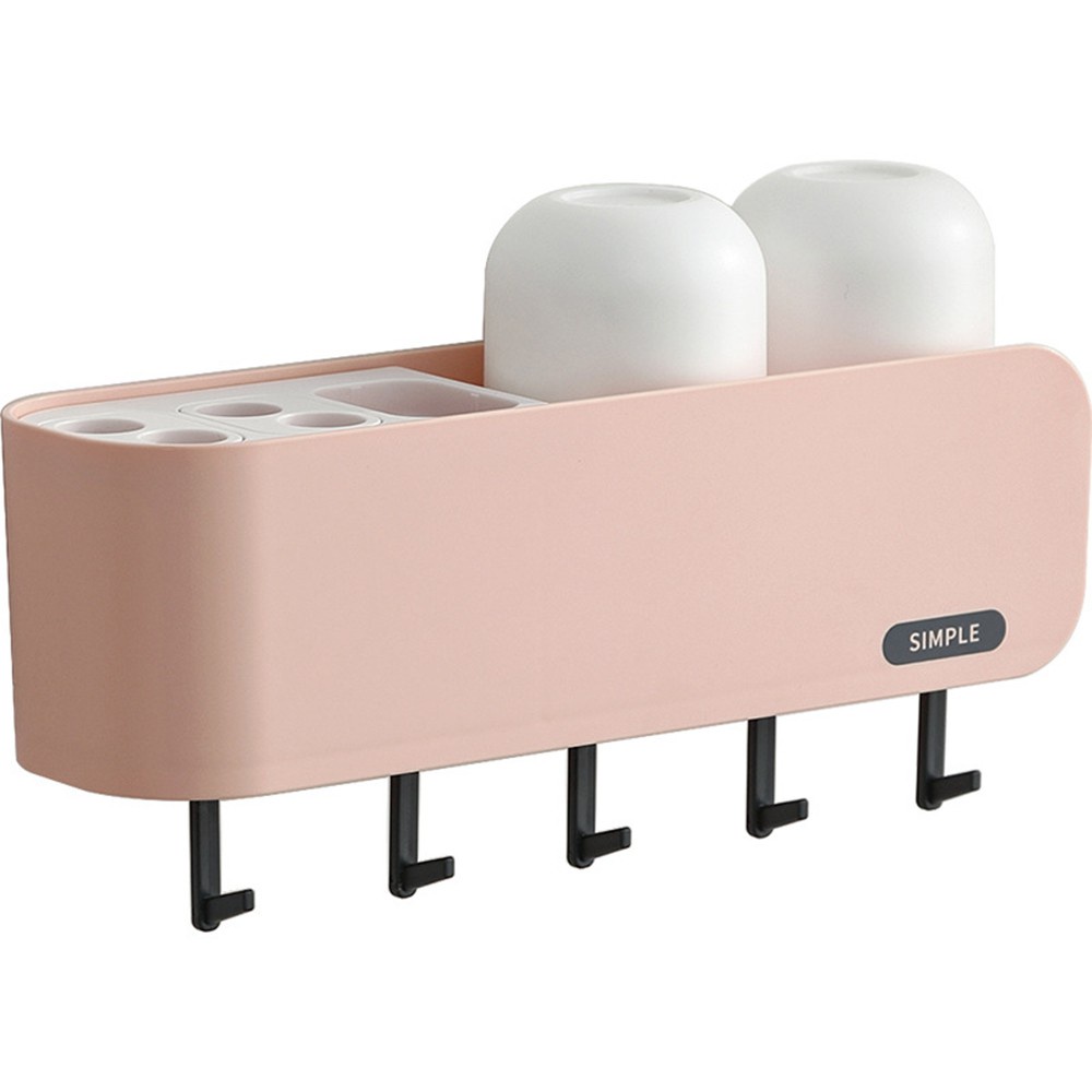 Giới thiệu Khay Giá Để Bàn Chải, Cốc, Tuýp Kem Đánh Răng H9 - CHỮ SIMPLE Mới Về (Có 5 Móc Treo Đen + Kèm 2 Cốc) US906