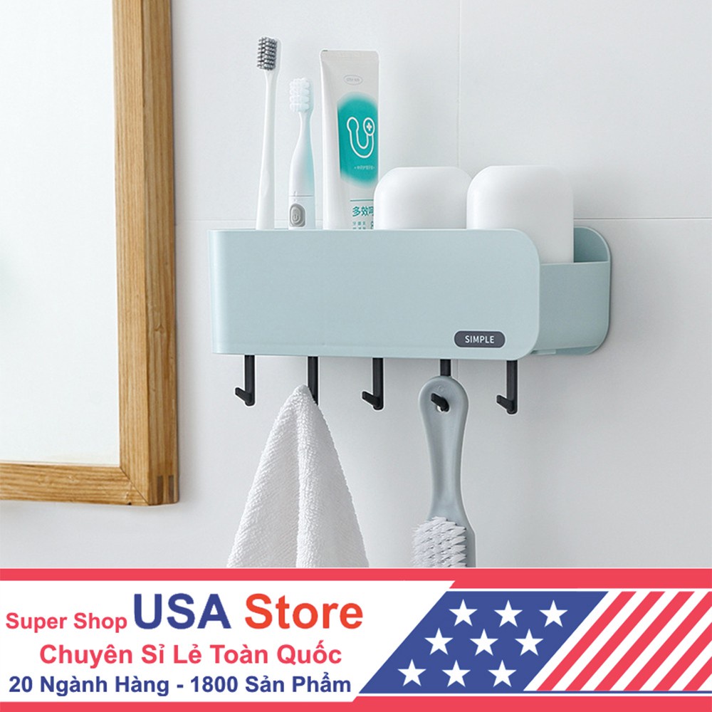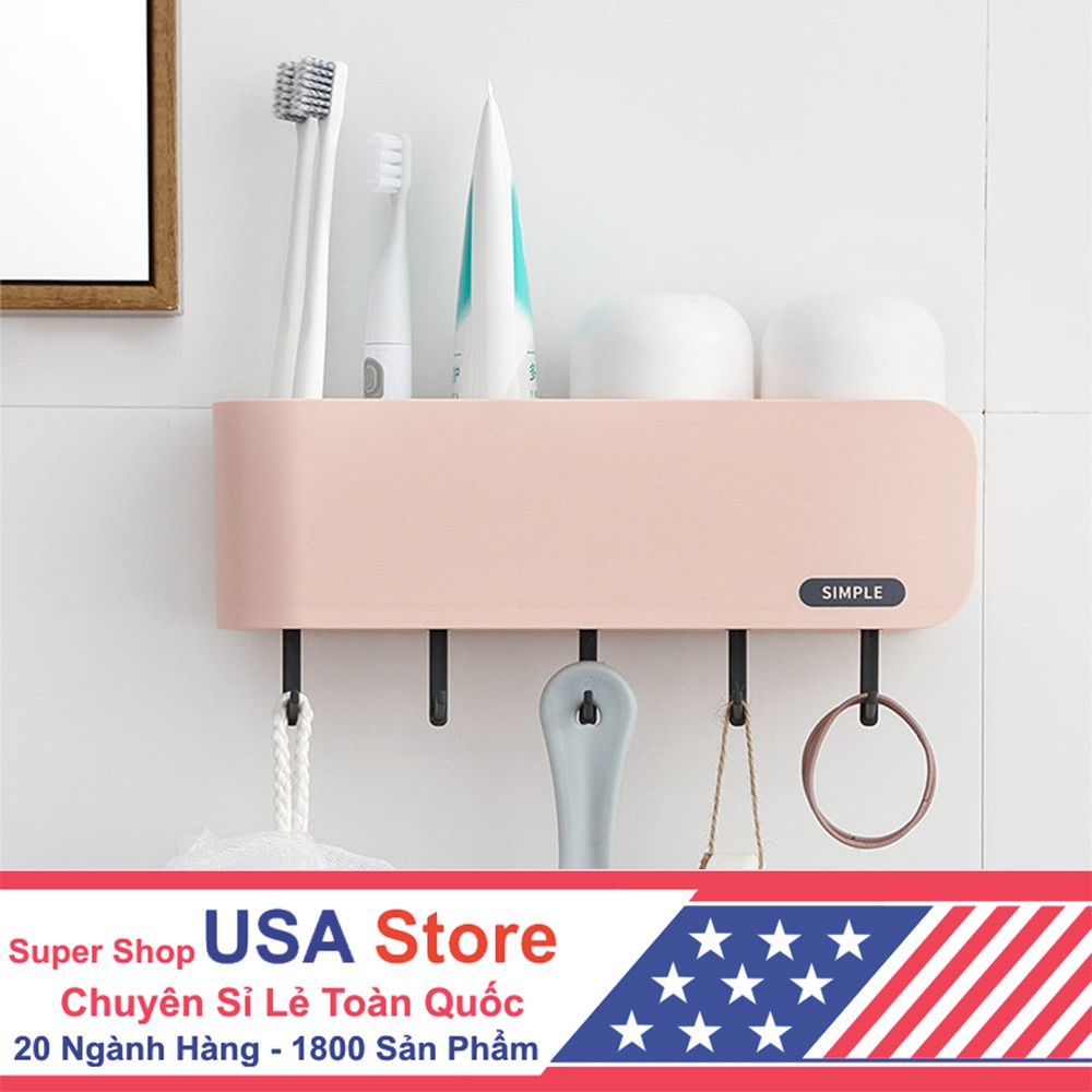 Nhà cửa & Đời sống > Đồ dùng phòng tắm > Kệ đựng bàn chải, kệ nhả kem đánh răng || Khay Giá Để Bàn Chải, Cốc, Tuýp Kem Đánh Răng H9 - CHỮ SIMPLE Mới Về (Có 5 Móc Treo Đen + Kèm 2 Cốc) US906Còn hàng