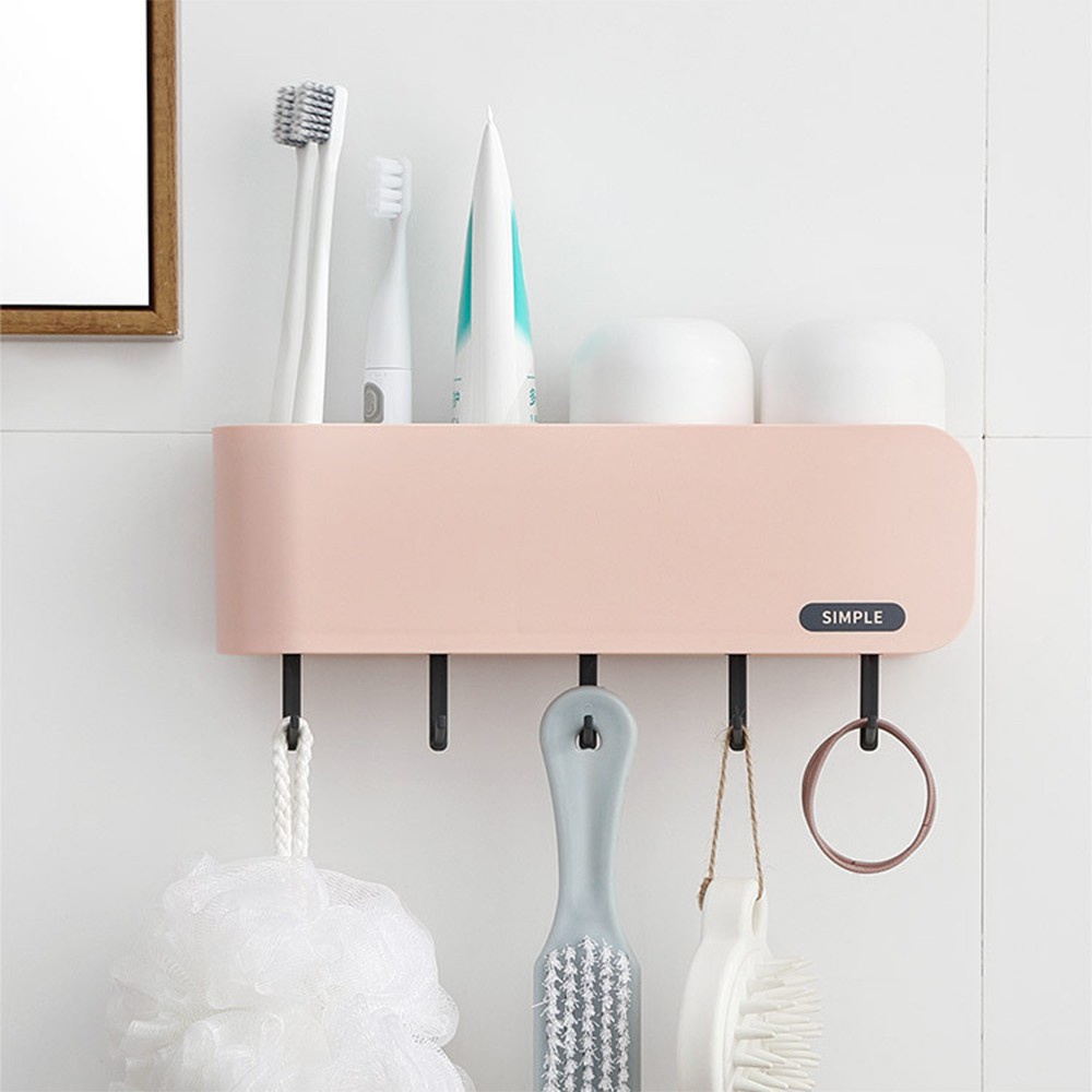 Nhà cửa & Đời sống > Đồ dùng phòng tắm > Kệ đựng bàn chải, kệ nhả kem đánh răng || Khay Giá Để Bàn Chải, Cốc, Tuýp Kem Đánh Răng H9 - CHỮ SIMPLE Mới Về (Có 5 Móc Treo Đen + Kèm 2 Cốc) US906Còn hàng